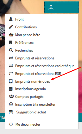 accessible à partir du "Compte lecteur" > "Emprunts numériques" >