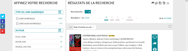 Notre offre de livres numériques est accessible dans le catalogue général en recherche simple. Pour sélectionner uniquement les livres numériques, vous pouvez affiner la recherche en sélectionnant "livres numériques" dans "types de document" sur le bandeau gauche.