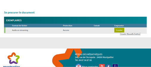 Vous obtenez « MEDIATHEQUES DE MONTPELLIER MEDITERRANEE METROPOLE ».