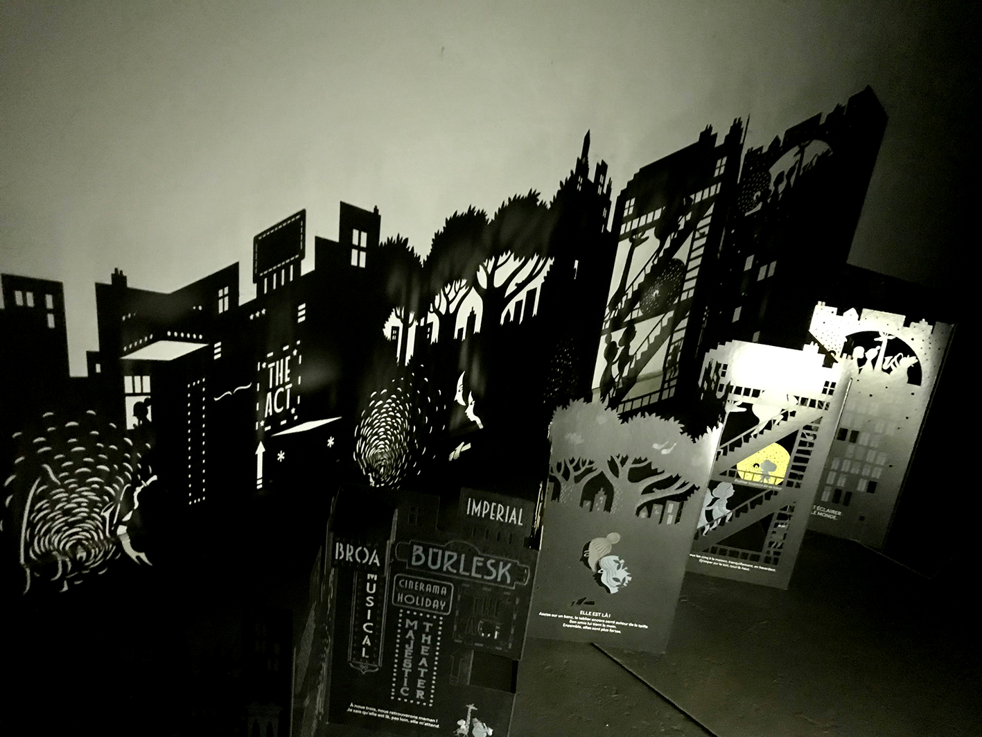 J’aime aussi chercher et trouver des « concepts » qui peuvent apporter une touche d’originalité et servir l’histoire, par exemple ajouter des trous dans les pages pour créer une surprise (comme pour Ensemble et Les premières fois ), créer des livres-objets qui peuvent devenir des petits théâtres d’ombre éclairé à la lampe de poche (comme Tout Noir )