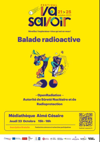 Dans le cadre du festival Va Savoir. Découvrez la radioactivité qui nous entoure à travers une balade interactive. Manipulez des capteurs, publiez vos mesures et participer à la cartographie citoyenne de la radioactivité.<br/><br/>À partir de 12 ans<br/><br/><img src="https://mediatheques.montpellier3m.fr/basicimagedownload.ashx?itemGuid=42484730-7A37-4976-84EC-01270B95682C" width="211" height="224" loading="lazy"/>
