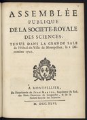 Discours prononcé à la première Assemblée publique de la Société Royale des Sciences tenue dans la salle de l'Hôtel de ville de Montpellier, en présence des Etats de la province de Languedoc le dixième du mois de décembre 1706 / par Mr de Plantade,... dir