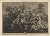 Relevé d'inscription sur le document : "N. Poussin pinx" "A. Loir sculp" "Tipis P. Mariette via Iacobea sub Signo Spei" Dédicace à Charles Le Brun" - Relevé d'inscription sur le document : Au bas, à gauche : "N. Poussin Pinx." et à droite : "Aeg. Rouseelet sculp. 1677"<br/>