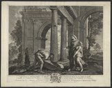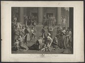 Relevé d'inscription sur le document : ETHRA Mere de THESEE-- "Tableau original du Poussin qui est dans le Cabinet de/Monsieur du Tillot, ministre et secrétaire d'état de S.A.R. Monseigneur l'Infant Dom Philippe" " Gravé par Ravenet le fils, graveur de l'Infant et professeur en son Académie Royale de Peinture et de Sculpture"<br/>