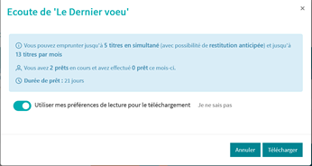 Remarque : vous pouvez modifier vos préférences de lecture depuis le compte lecteur > "emprunts numériques".
