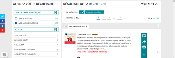 Notre offre de livres numériques est accessible dans le catalogue général en recherche simple. Pour  sélectionner uniquement les livres numériques, vous pouvez affiner la recherche en sélectionnant "livres numériques" dans "types de document" sur le bandeau gauche.