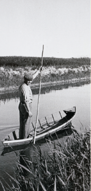 Les Barques : « Le couloir qui m’avait conduit de la canalette au premier lac serpentait au milieu des roseaux. » Photographie reproduite dans l’édition de La Guilde du Livre. [1945?]. Droits réservés. (page 36)