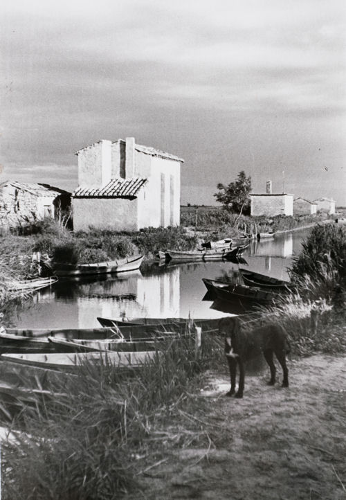 Les Cabanes le long du canal rejoignant l’Étang de l’Or. Photographies [1945 ?]. Droits réservés