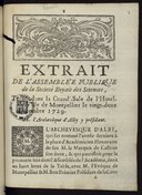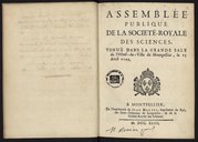 Assemblée publique de la Société Royale des Sciences tenue dans la grande sale de l'Hôtel de ville de Montpellier le 25 avril 1743.