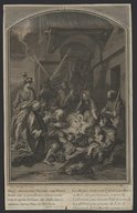 Relevé d'inscription sur le document : Sous la composition en bas à gauche : "Joan. Jouvenet inv. Et pinx." ; extrait en latin et français de l'Evangile selon saint Mathieu (Ch,2, V.11). <br/>