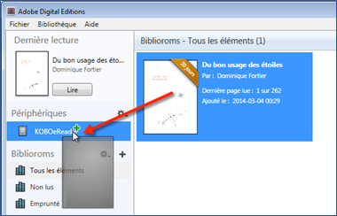 sélectionnez dans votre bibliothèque le livre numérique à transférer