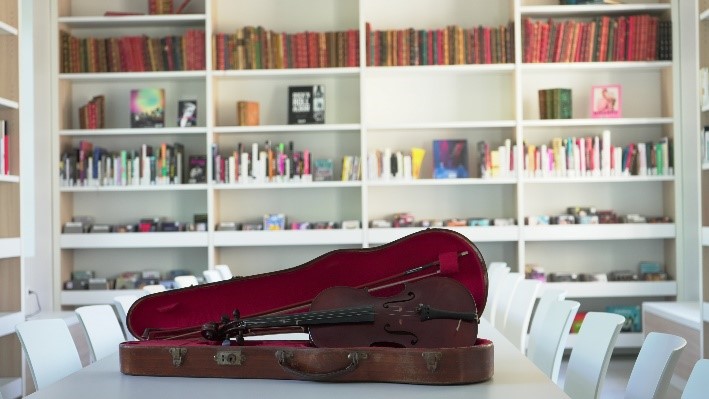 Au sein de la Cité des Arts, le centre de ressources de 130 m², initialement prévu à destination des enseignants et des élèves du conservatoire, se transforme en médiathèque ouverte à tous : élèves, professeurs du Conservatoire et grand public.