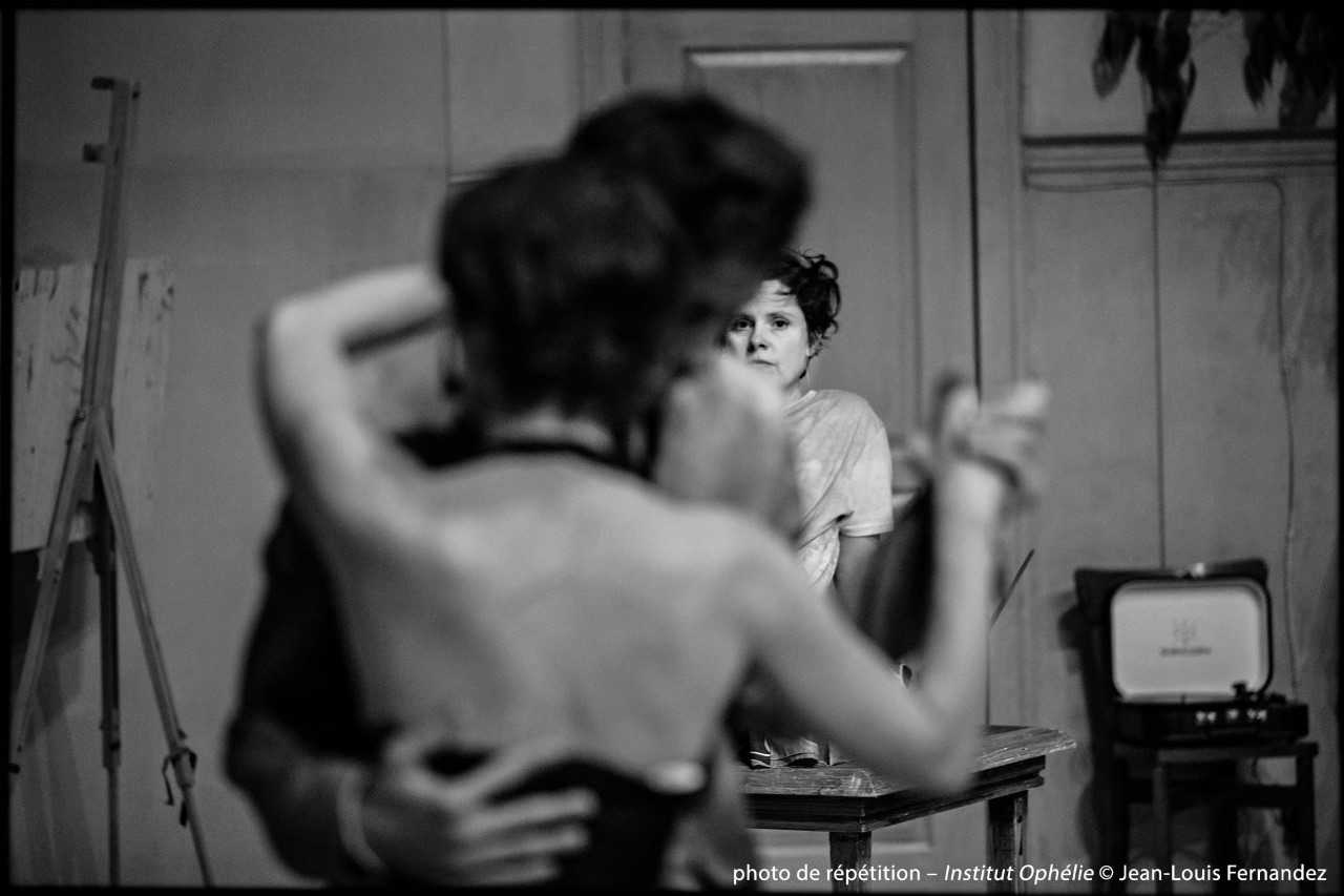 À quelques jours de la première d’Institut Ophélie, Olivier Saccomano accompagné de quelques acteurs de la Troupe Associée raconteront les mouvements qui ont traversés cette création, les fantômes qui l’ont habités jusqu’à dessiner des personnages et des visages. Parmi eux une femme qui compose des tableaux, peut-être vivants, peut-être parlants. Chaque tableau appelle des costumes, des accessoires, parfois des sons, parfois des lumières. Ces tableaux ne sont pas des scènes au fil desquels une histoire progresserait, ils forment une exposition à la chronologie incertaine, opérant par va-et-vient et bonds dans le siècle.